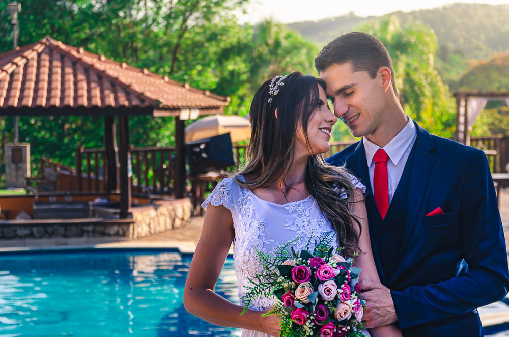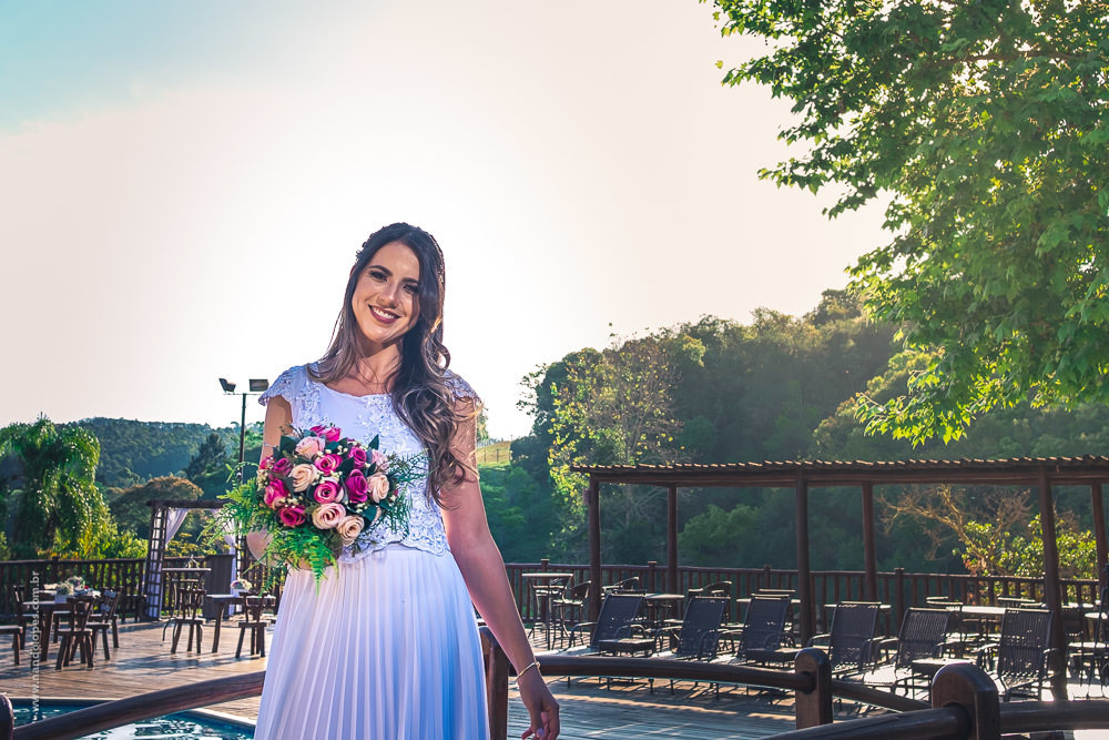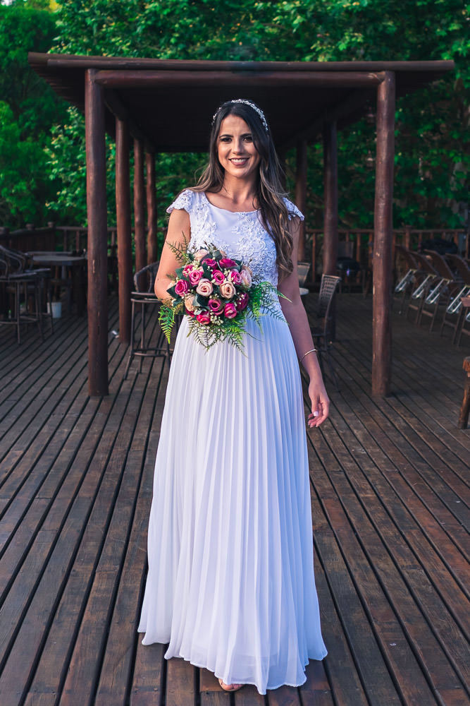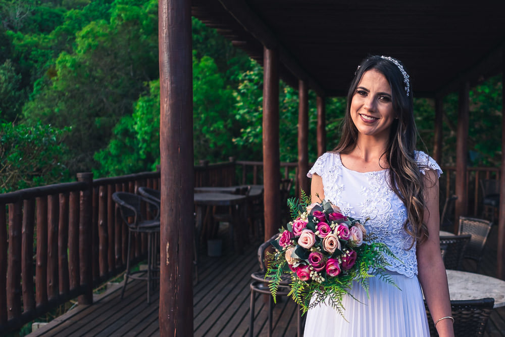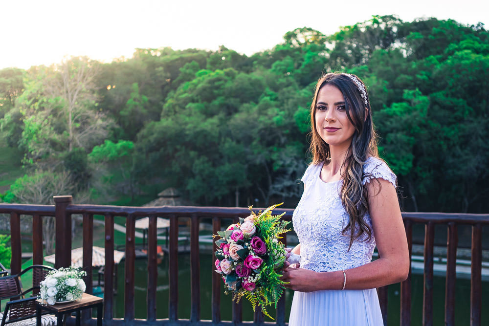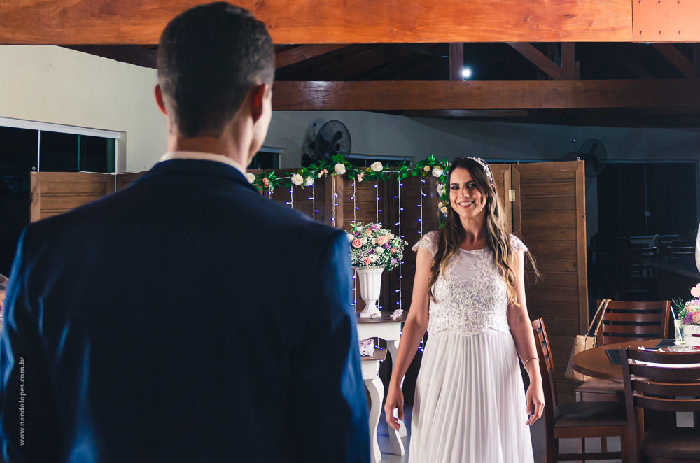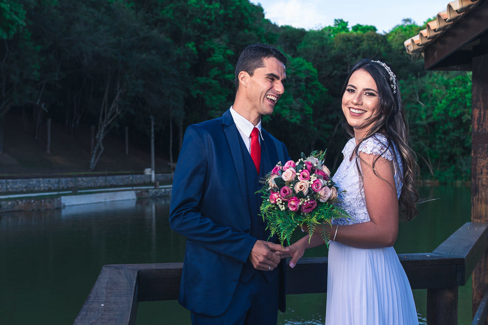 A quantidade de convidados presenciais foi bem reduzida, não devia ter 20 pessoas presentes. O local foi um Hotel Fazenda em Ibiúna, no interior de São Paulo, em uma área aberta e com amplo espaço, então, protocolos mantidos. E neste casamento tivemos um diferencial que gostei muito.